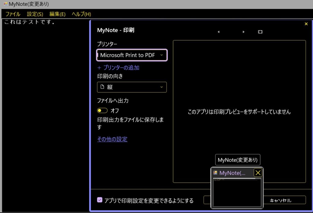 フォームが立ち上がり左上にアプリ名「MyNote」が表示されました。