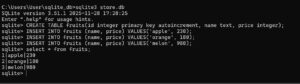 CREATE TABLE fruits(id integer primary key autoincrement, name text, price integer);