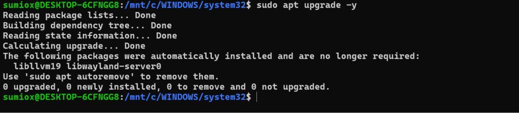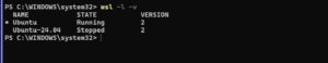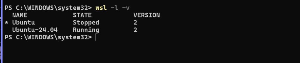 この時点で、Ubuntu-24.04が起動し、PowerShellがUbuntu-24.04 モードに切り替わりました。