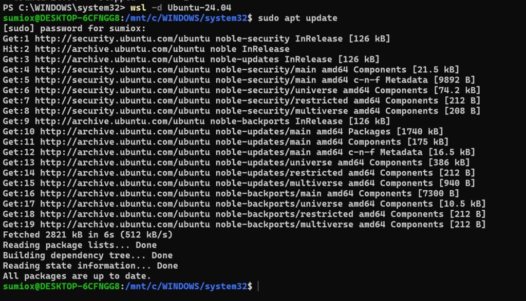 前回の記事では Windows 11 に WSL2 と Ubuntu 24.04 を導入しました。