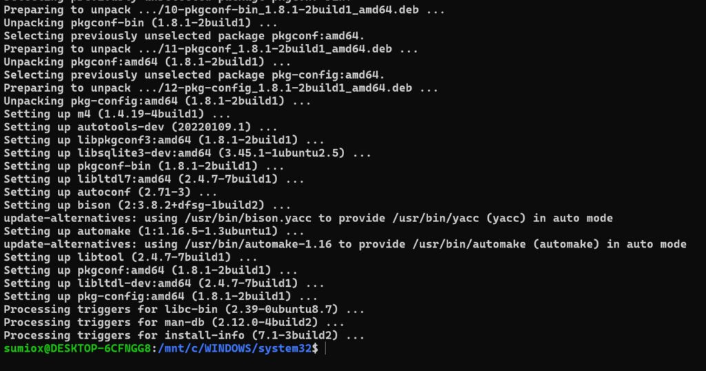 Windows ネイティブでは頻発する gem のビルドエラーもこの Linux 環境ではほぼ発生しません。