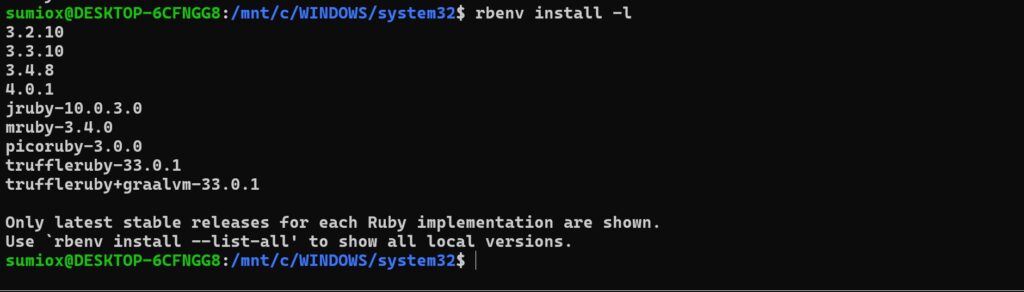 この記事では、WSL2 + Ubuntu 24.04 に Ruby 4.x を rbenv を使ってインストールする手順を、初心者向けに解説します。